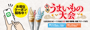 岡島のLINE公式アカウントに友だち登録すると「全国うまいもの大会」で使えるお得なクーポン券をその場でプレゼントいたします!