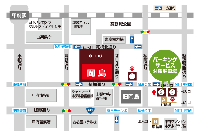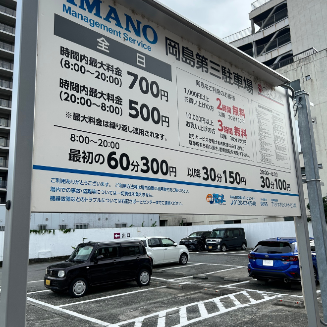 ※ココリ駐車場、岡島 第一駐車場は対象外です。