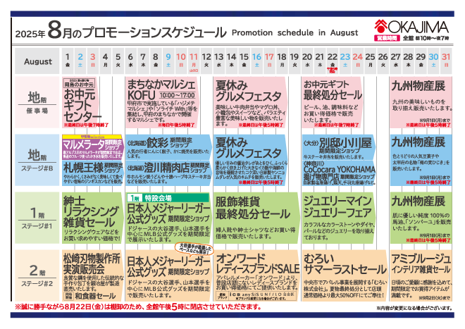 8月のプロモーションスケジュール