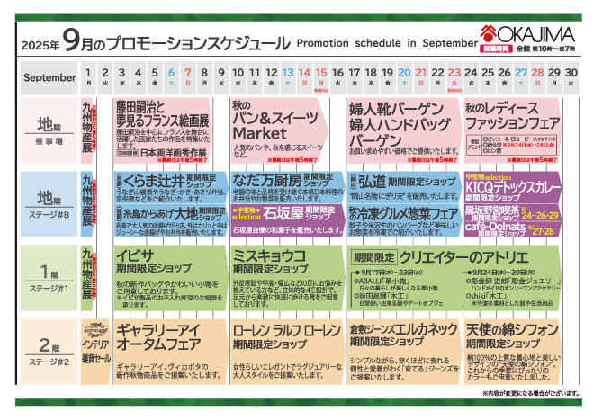 9月のプロモーションスケジュール