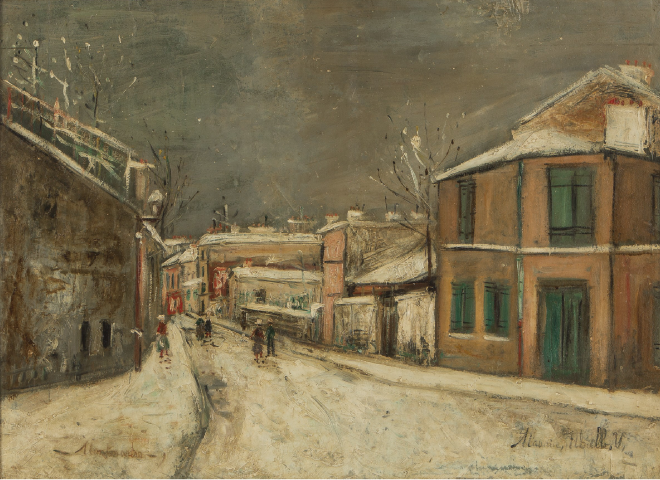 「モンマルトル 雪のアブルボワ通り」