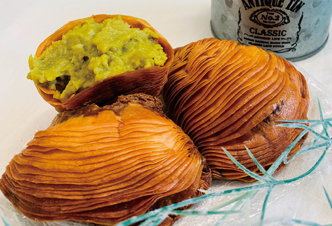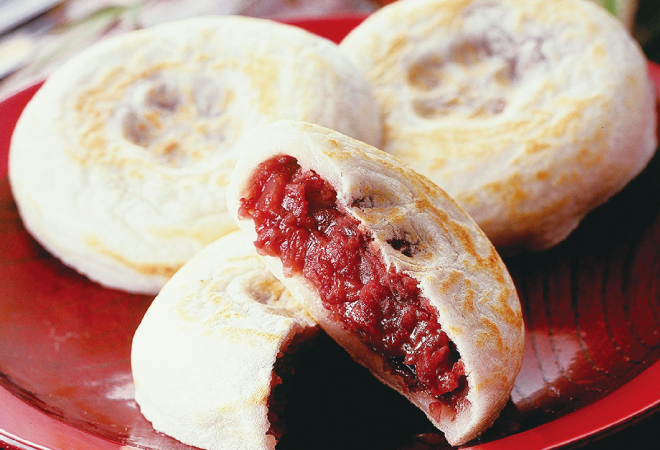 甘さ控えめの粒あんをもっちりとした生地で包み、焼き上げた大宰府名物です。