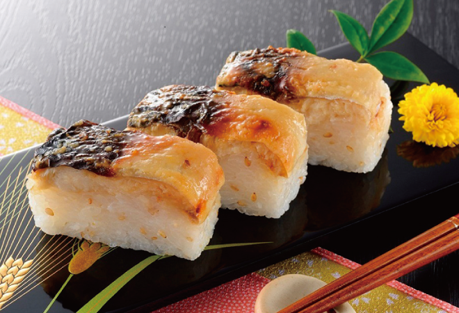 爽やかな香り立つ焼き鯖寿司を是非ご賞味ください。