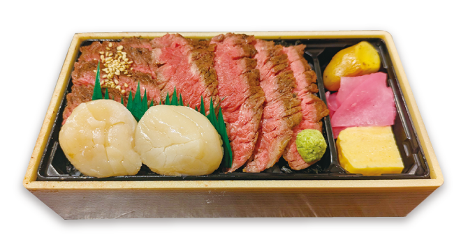 猿払産ホタテと北海道産牛ステーキ2種盛弁当