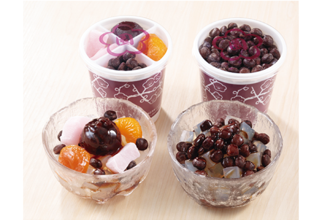 食感の良い寒天に、ほのかな塩味の赤えんどう豆、濃厚に仕上げた黒蜜が相性抜群です。