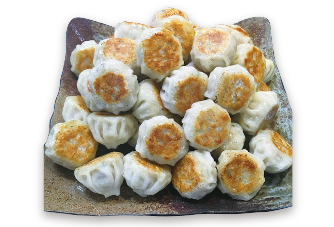 女性とお子様に大人気!ニラ、ニンニク控えめで食べやすいジューシーな一口サイズの丸餃子です。