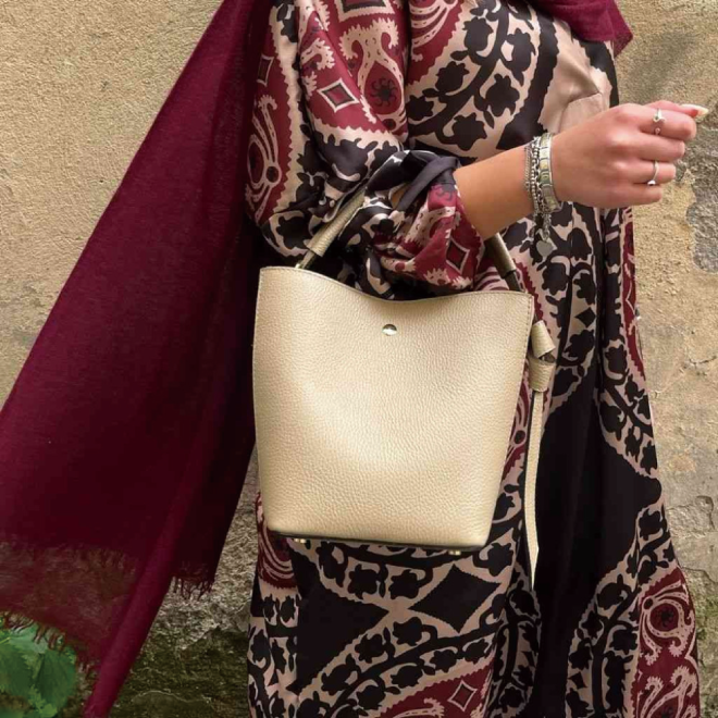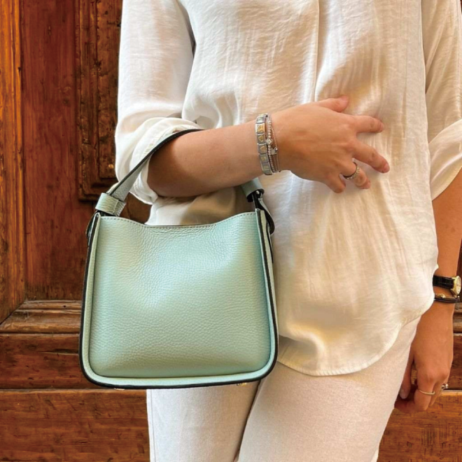 シンプルながらもかわいらしさと機能性を兼ね備えたイタリア製レザーバッグです。