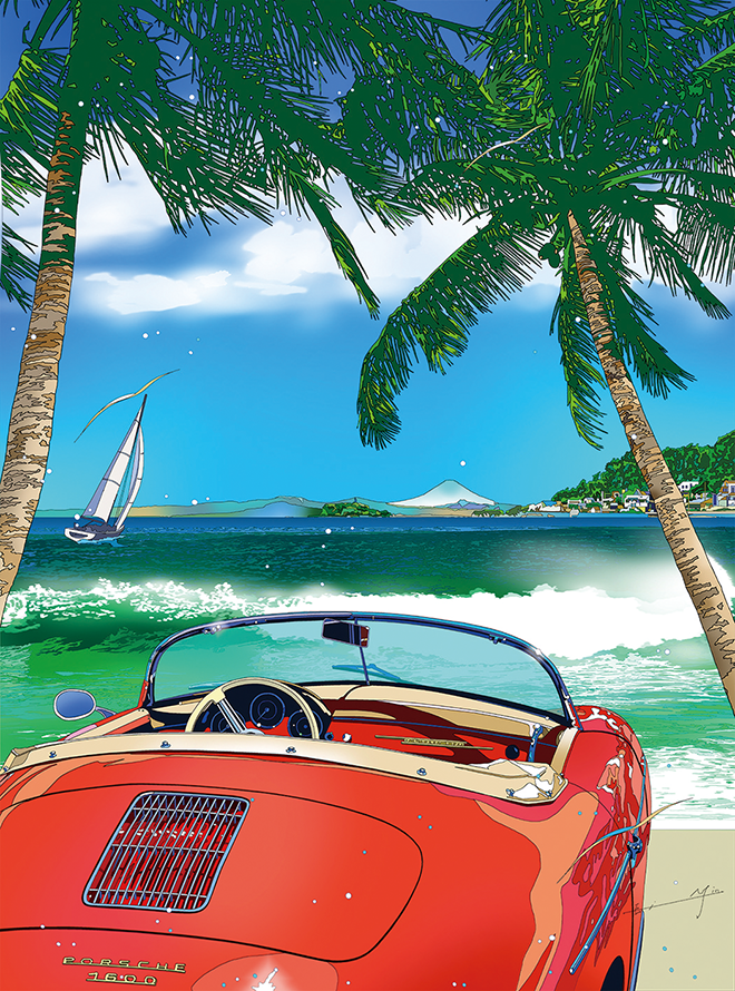 80年代より、アメリカのリゾート地やクラシックカーを題材に、イラストレーターとして第一線で活躍している鈴木英人氏。