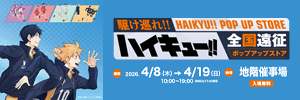 全国各地を巡る、アニメ「ハイキュー!!」のポップアップストアが開催!様々な商品を店頭でお取り扱い!各キャラクターのスタンディーや各高校の横断幕、のぼり、さらに場面写真など展示も盛り沢山!
